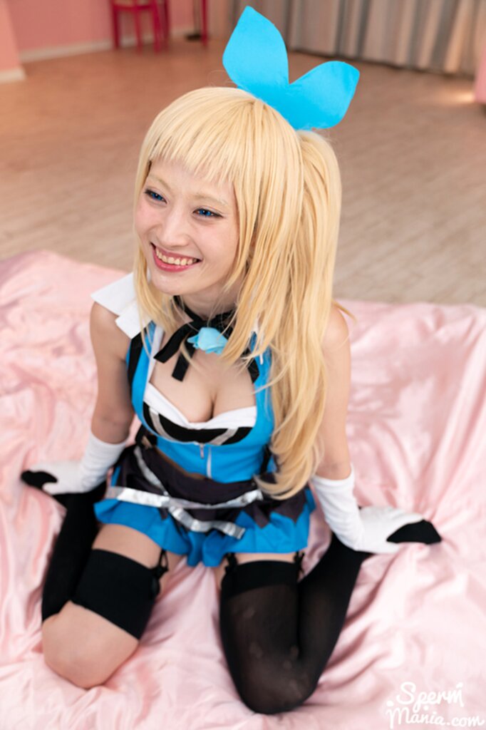 On her knees smiling broadly