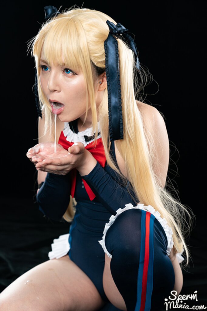 Mary spitting cum onto her raised hand looking up